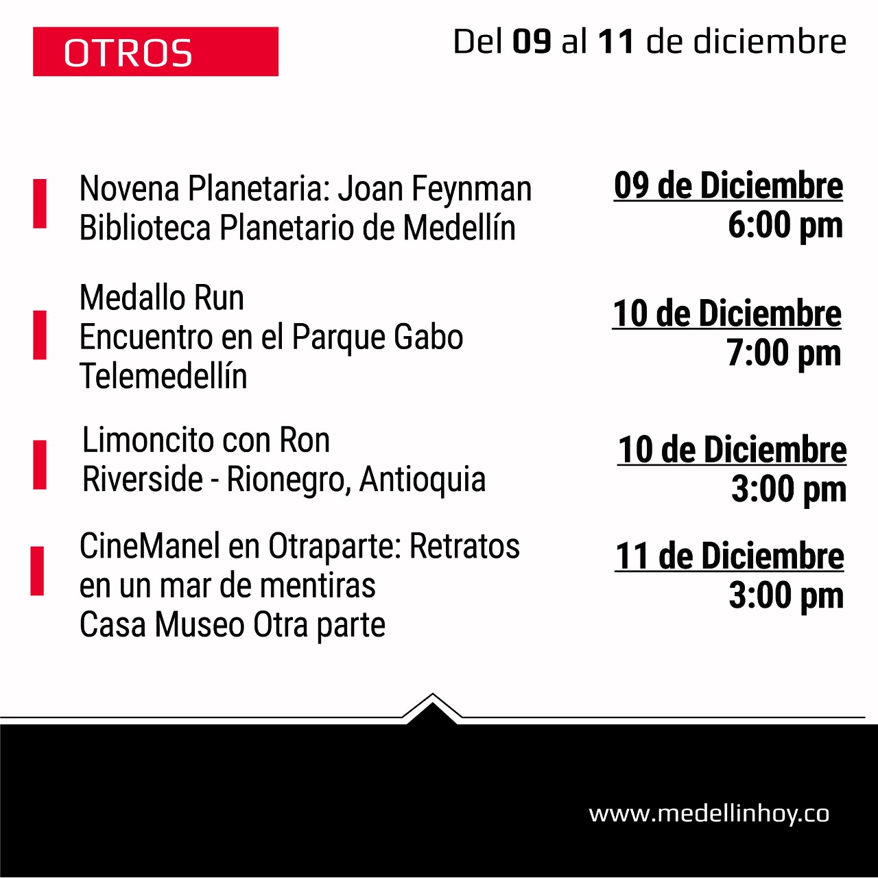 No te vayas a perder ninguno de estos fascinantes eventos que se realizarán en Medellín este fin de semana de diciembre, entre el 9 al 11: