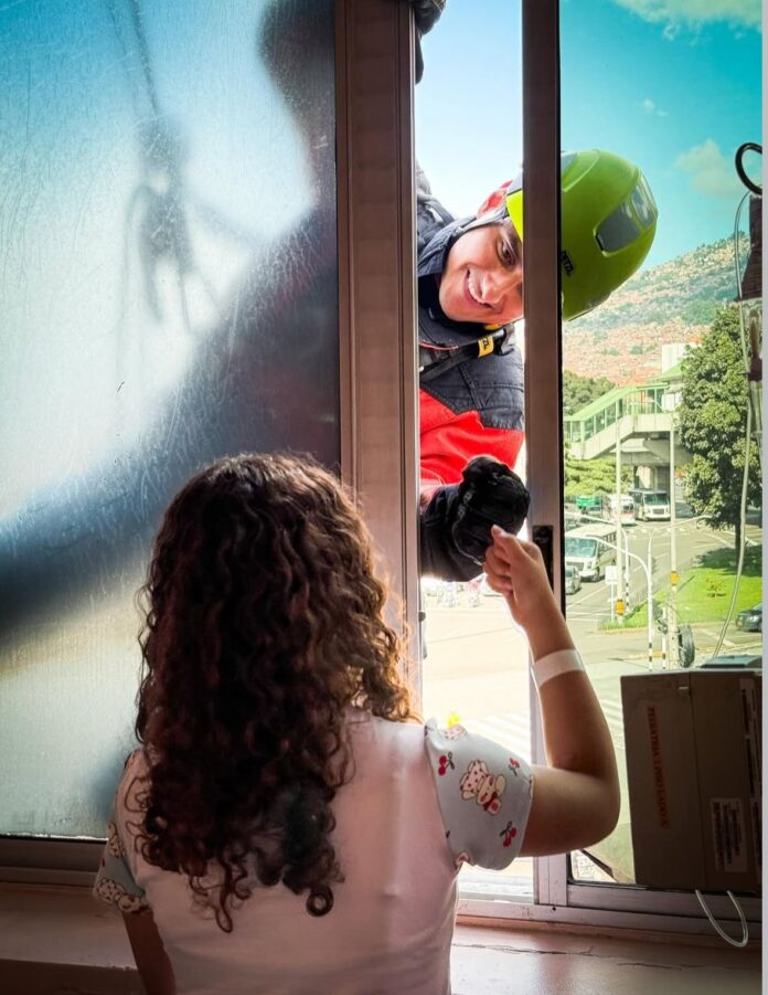 Vestidos con sus uniformes y llevando mensajes de ánimo, los bomberos interactuaron con los niños y sus familias, recordándoles que no están solos y que la ciudad también los acompaña en sus procesos de recuperación. La actividad fue recibida con emoción por padres, cuidadores y personal médico.