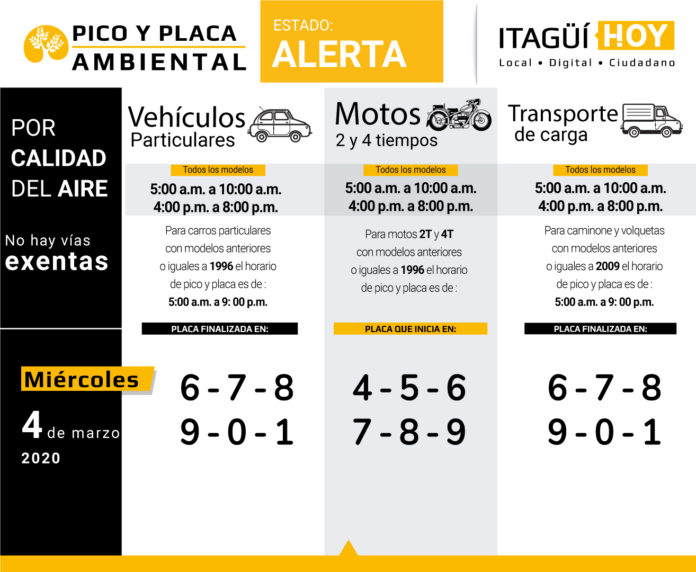 El Área Metropolinata del Valle de Aburrá extendió hasta mañana miércoles, 4 de febrero, la restricción de pico y placa ambiental debido a que el estado meteorológico sigue sin permitir mejoras en la calidad del aire.